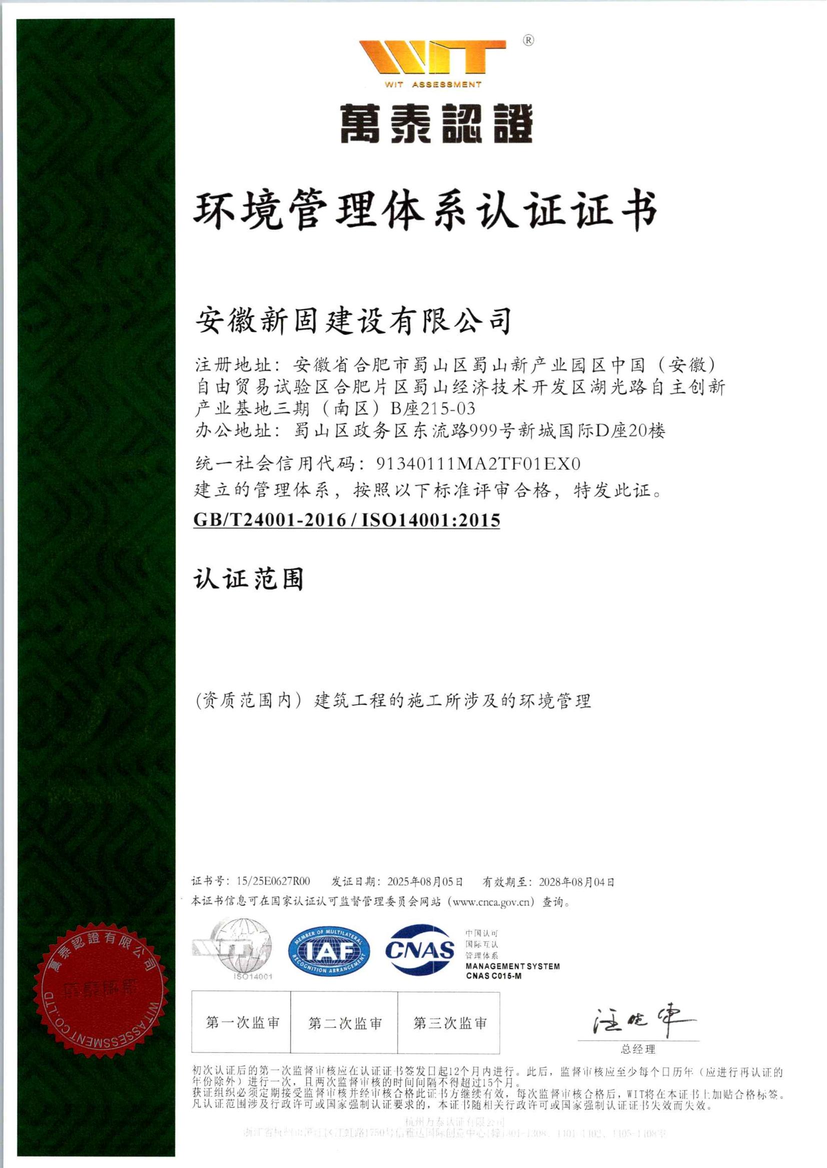 安徽新固獲“環(huán)境管理…