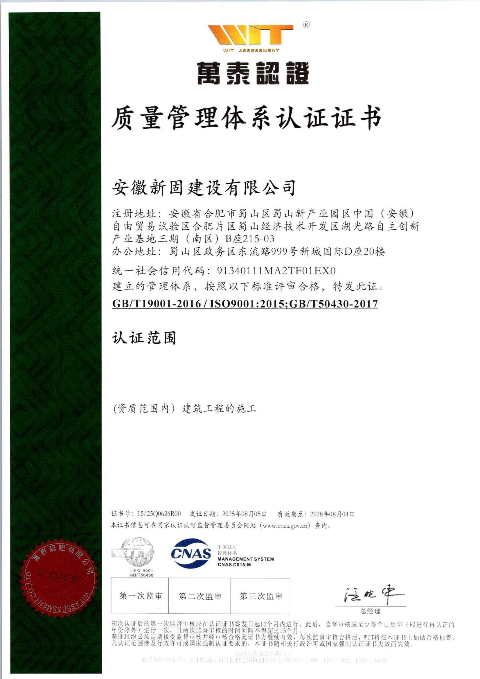 安徽新固獲“質(zhì)量管理…