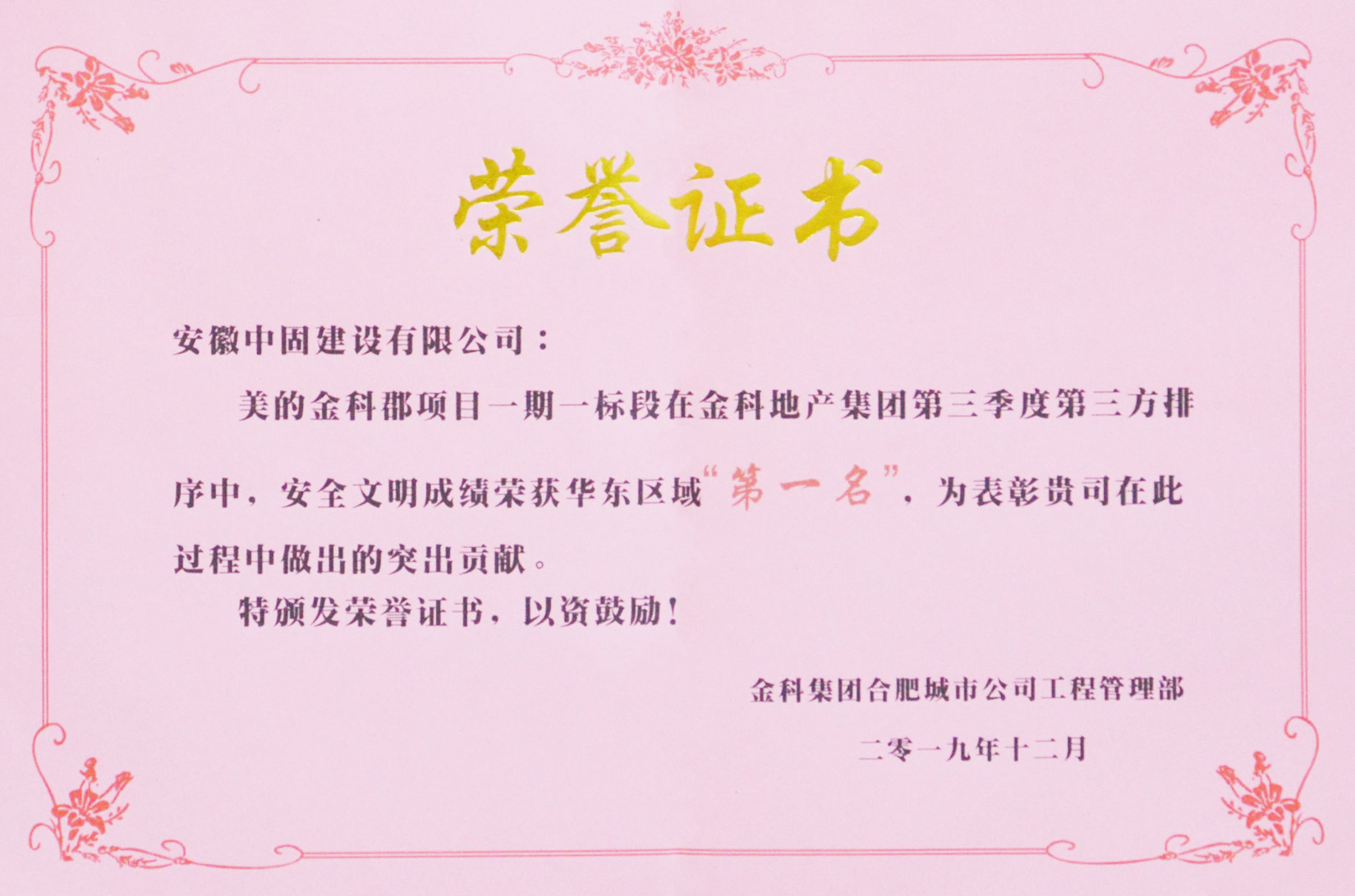 獲中梁地產集團“優秀…