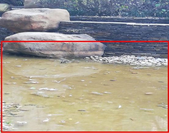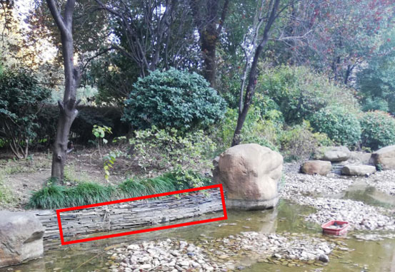 某住宅小區廣場內中央景觀水系,其水池四周采用景觀石塊堆疊而成,四周沒有防水措施,故景觀水池內無法存水。