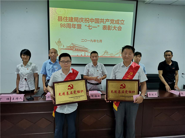 2019年7月5日,南陵縣住建局黨委召開慶祝中國共產黨成立98周年暨“七一”表彰大會。現住建局黨委書記、局長陶海波以及局黨委成員,住建局黨委全體黨員參加。中共安徽中固建設有限公司黨支部榮獲先進基層黨組織稱號,貝立群同志榮獲“優秀黨員”稱號。