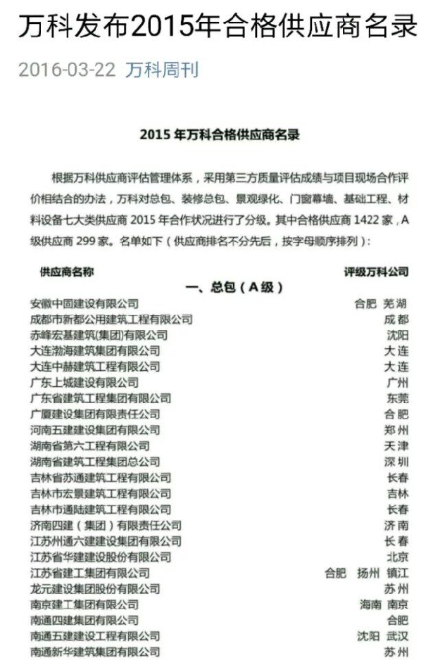 萬科-A類供應商