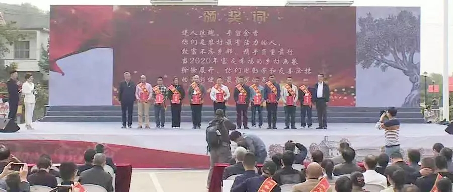 演出現(xiàn)場,對扶貧工作涌現(xiàn)出的16位“脫貧示范戶”、13位“扶貧先鋒”和8位“帶貧