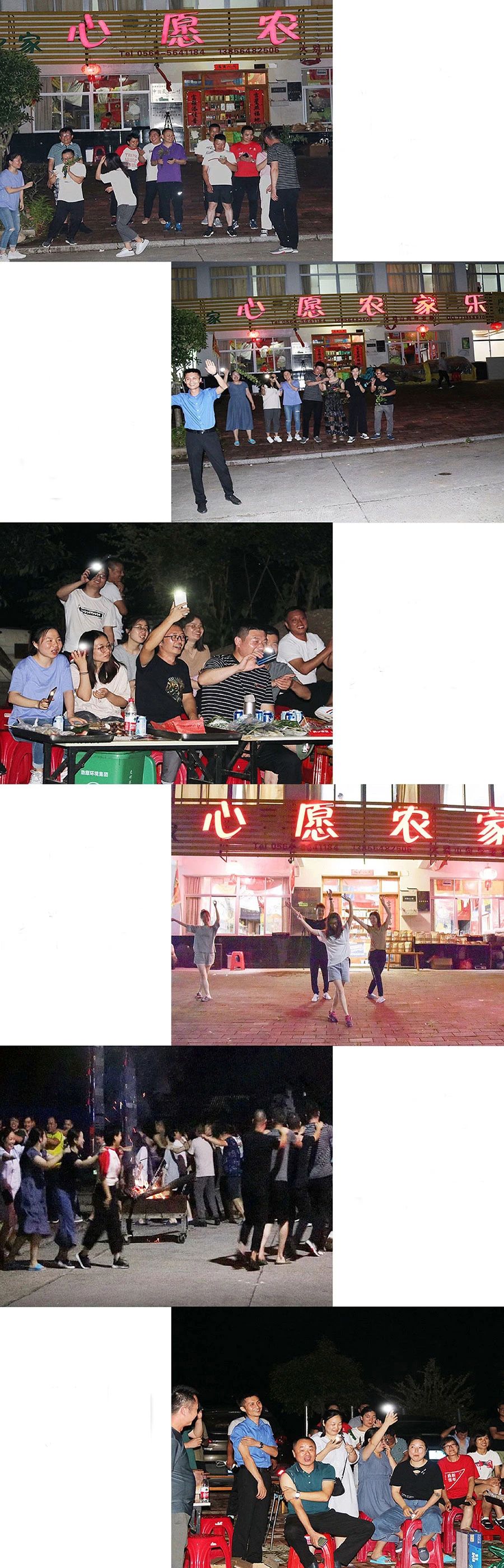 夜晚,當絢爛的煙火劃過天際,當篝火在寧靜的山村熊熊燃起,當燒烤的香氣逐漸彌漫,簡單而又豐富的活動按時登場了。一首動感十足的野狼disco開啟了晚會的序曲,集團常務副總裁徐華龍給大家帶來了《你的樣子》,財務部的小伙伴們讓大家領略了《大別山下的白素貞》,黨員同志們演唱了《我和我的祖國》,裝飾公司為大家獻上了《相親相愛一家人》……壓軸的《兔子舞》將演出推向了高潮。此時,沒有了徒步時的疲憊,也沒有了工作時的壓力,大家在一起共同交流,放松身心。