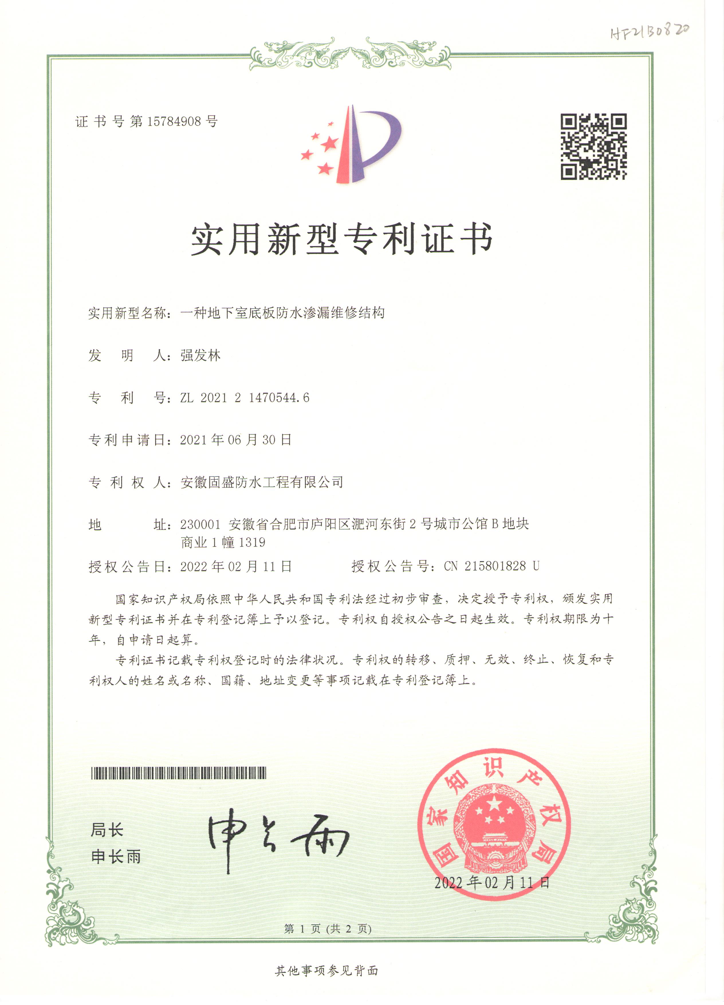 實用新型專利證書