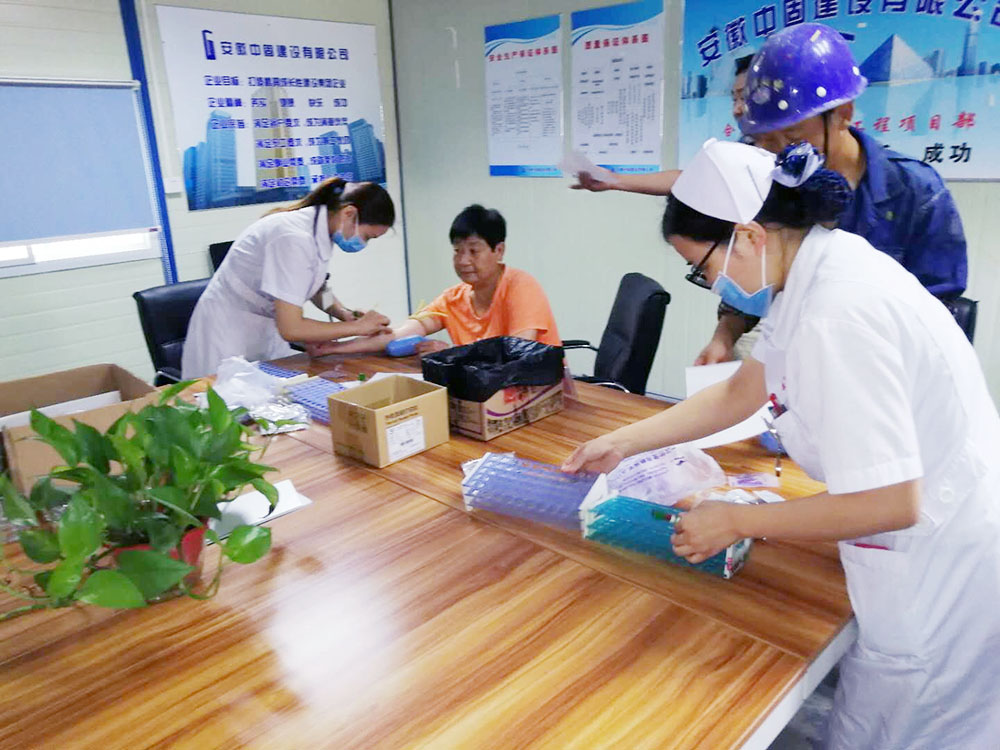 圖為中固建設(shè)?萬科紅郡項(xiàng)目員工參加健康體檢