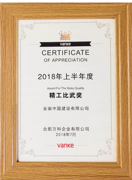 匠心筑夢,標準先行!中固建設榮獲2018年萬科合作獎項