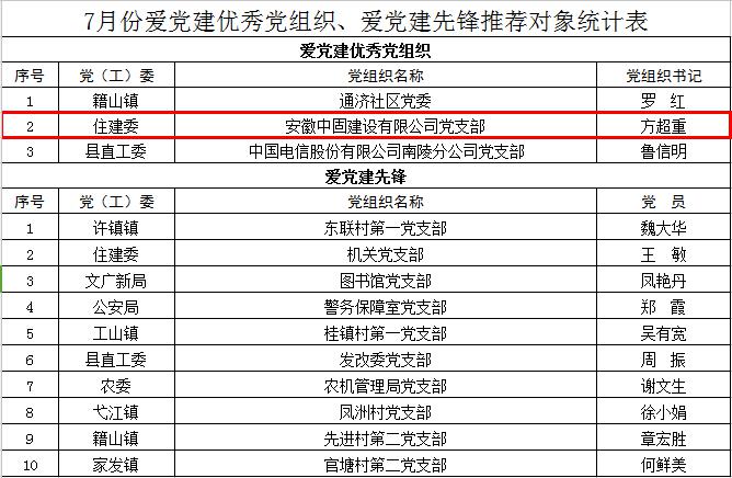 近日,中共安徽中固建設有限公司支部委員會被授予 “愛黨建優秀黨組織”的榮譽稱號,該平臺由蕪湖市委組織部主辦。