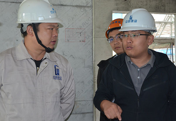 2018年10月14日上午,華地集團蚌埠區(qū)域公司總經(jīng)理助理羅沈浩等一行20余人,蒞臨安徽中固建設(shè)有限公司華地森林語(錦園)項目觀摩交流。安徽中固建設(shè)有限公司總經(jīng)理助理、工程管理中心總監(jiān)江波陪同。